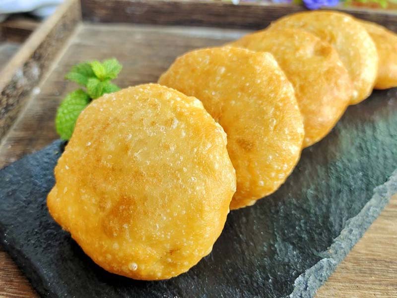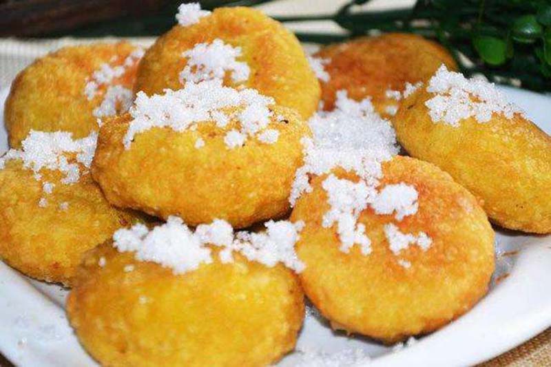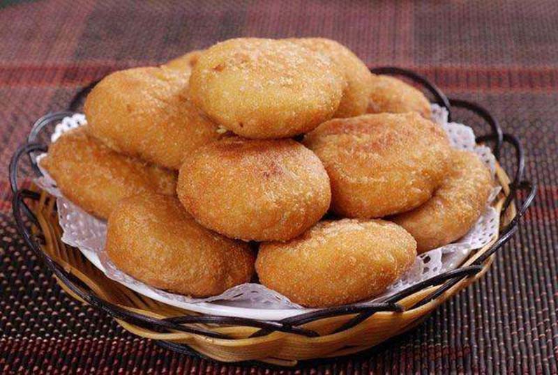 油糕,是以黃米(即軟黍米面)為皮,糖料或棗泥、豆沙等為餡,經(jīng)油炸制而成的食品,特點(diǎn)是柔軟、黏性大、外焦里嫩、黃中發(fā)紅、紅中透亮、美味可口。因“糕”與“高”諧音,為取其步步登高、吉祥富貴之意,人們往往在逢年過節(jié)或婚喪嫁娶、孩子滿月、日壽誕、起房蓋屋時(shí)食之。多年來,油糕伴隨著人們送舊迎新、慶賀道喜,成為朔州人民喜愛的傳統(tǒng)食品。