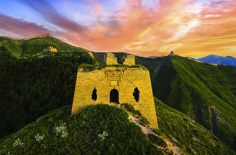 廣武長城,氣勢磅礴,恢宏壯觀,宛如蜿蜒曲折的巨龍。白草口附近鋸齒形長城,國內(nèi)罕見;新廣武西至白草口段,“躍上蔥蘢四百旋”;行至摩天嶺,恰如鳳翥龍蟠,雄渾的脊梁挺立山間;經(jīng)典地標(biāo)“月亮門”,雖經(jīng)歲月洗禮,復(fù)建重生依然屹立。漢逐匈奴、唐御突厥、宋抗契丹、明擊瓦刺,廣武歷經(jīng)戰(zhàn) 斗4700余次。歲月變遷中,見證了我國古代北方游牧民族與漢民族沖突又融合的歷史進(jìn)程,遺留了大量古代軍事文物和歷史故事。2019年,“長城新廣武村段”被確定為第八批全國文保。2020年,新廣武-白草口段長城,被列為國家級長城重要點段。